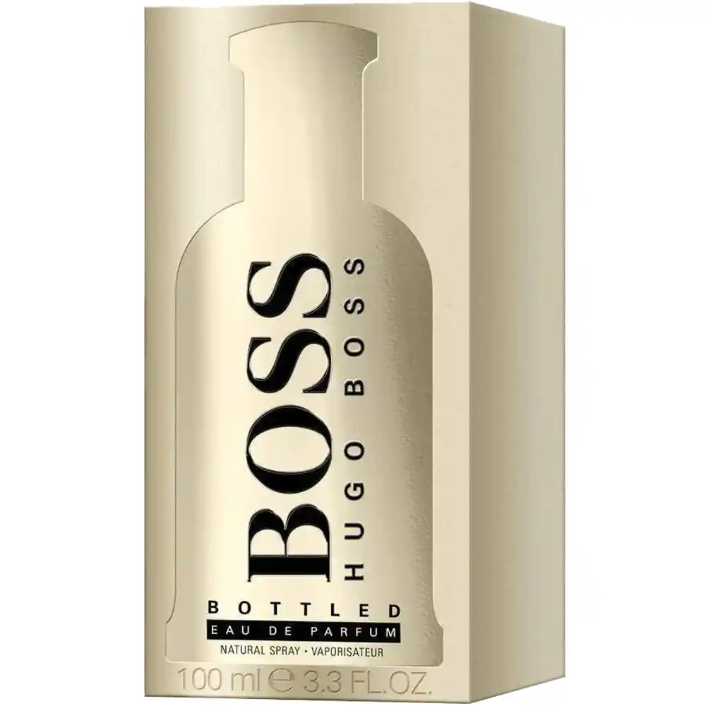 The bottle of BOSS Bottled Eau de Parfum reflects the fragrance’s timeless elegance. With its sleek, minimalist design and luxurious gold accents, this bottle captures the essence of sophistication and strength. Its smooth, matte finish makes it a standout on any fragrance shelf, exuding premium quality and modern luxury.